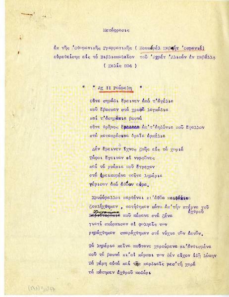 Μελέτες, σημειώσεις, αποκόμματα και λοιπά υλικά