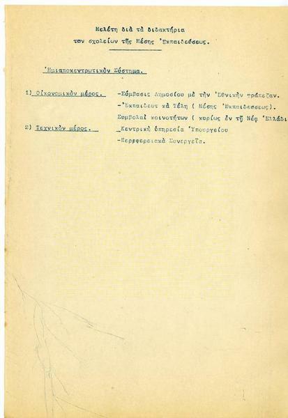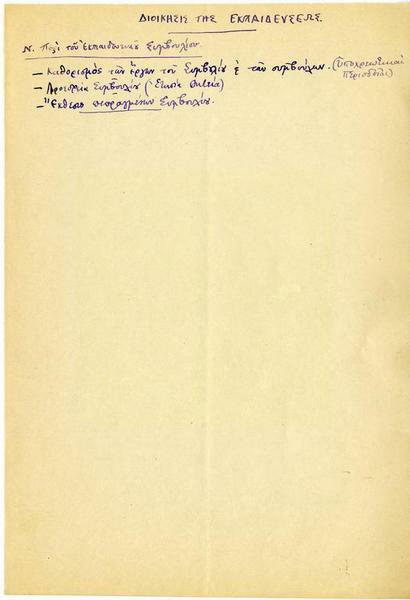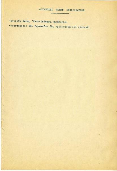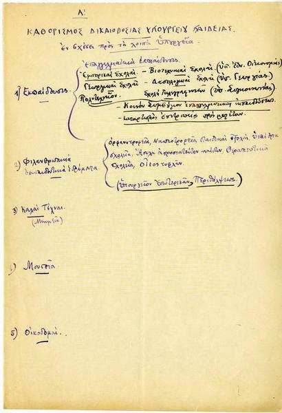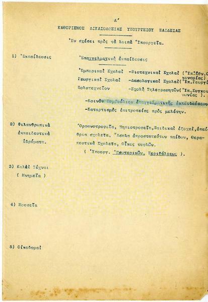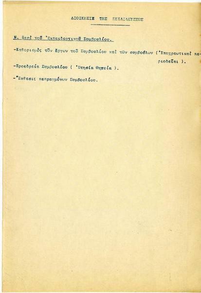 [1. Περί του Εκπ. Συμβουλίου. 2. Περί της δομής του Υπ. Παιδείας]