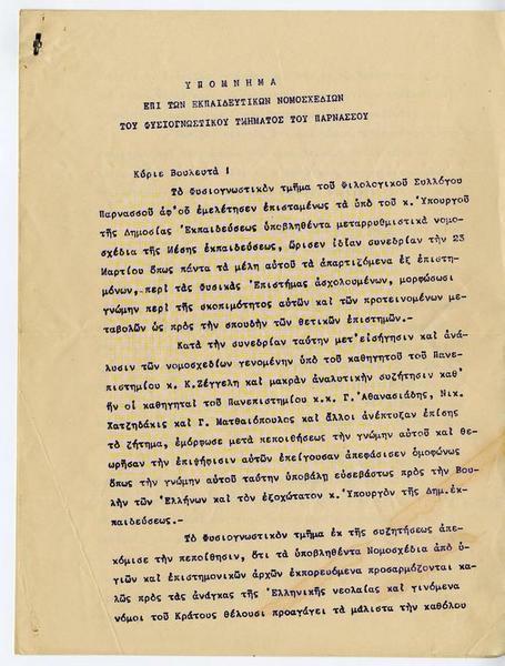 [Υπόμνημα του Φ.Σ. Παρνασσός]