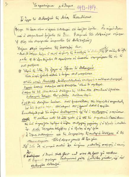 Εναρκτήριον μάθημα 1913-1914: Το έργον του ΔΜΕ