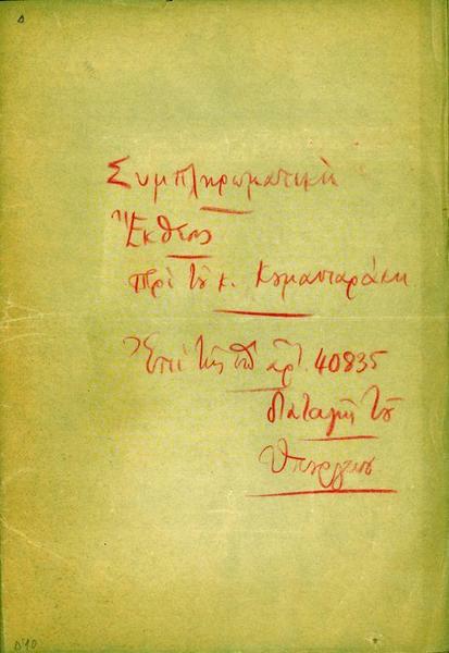 Συμπληρωματική Έκθεσις περί του κ. Κουμανταράκη