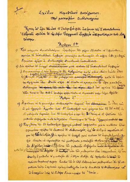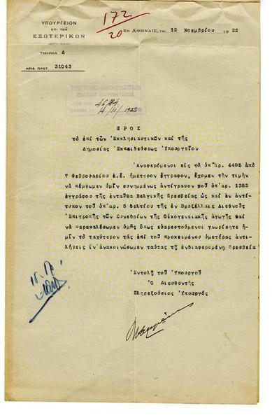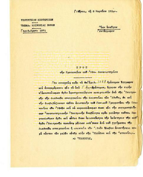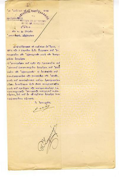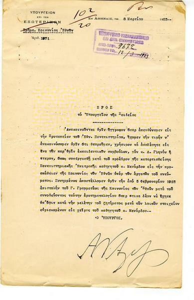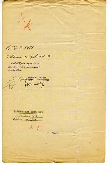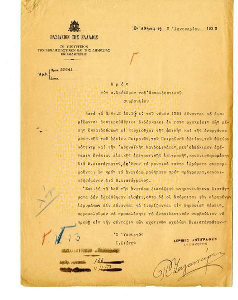 [Υπηρεσιακά έγγραφα Υπουργείου Παιδείας]