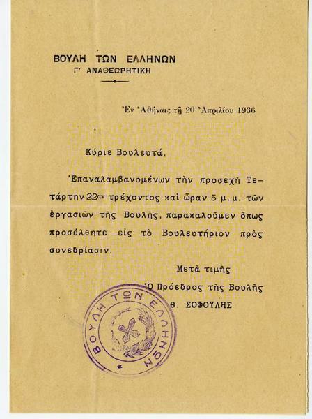 [Διάφορα υλικά από την κοινοβουλευτική δραστηριότητα του Δ. Γληνού]