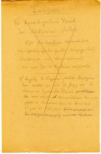 Μελέτες, σημειώσεις, αποκόμματα και λοιπά υλικά