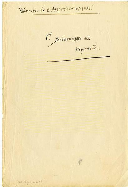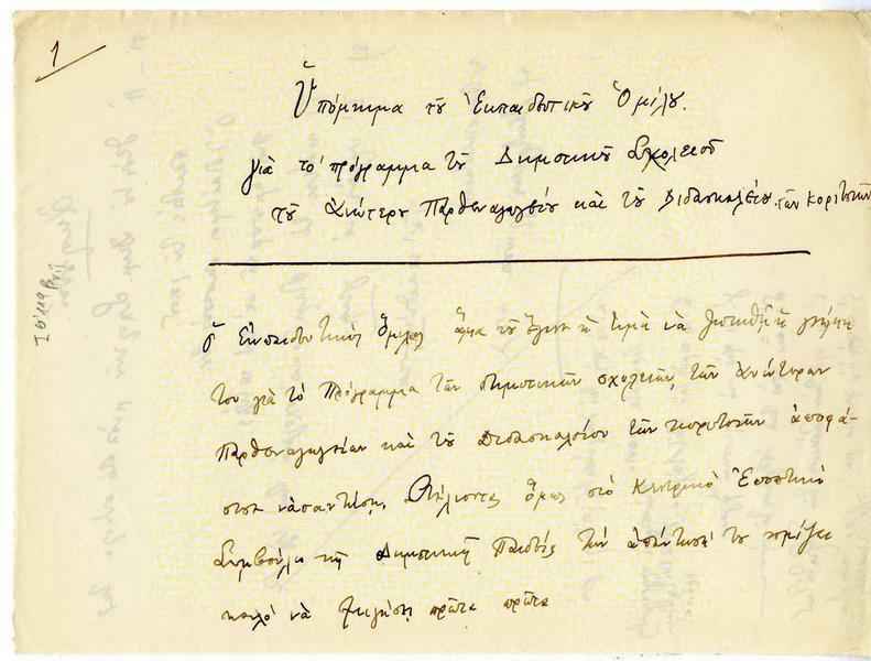 Υπόμνημα του ΕΟ για το Πρόγραμμα Δημοτικό Σχολείου, Ανωτέρου Παρθεναγωγείου και Διδασκαλείου Κοριτσιών