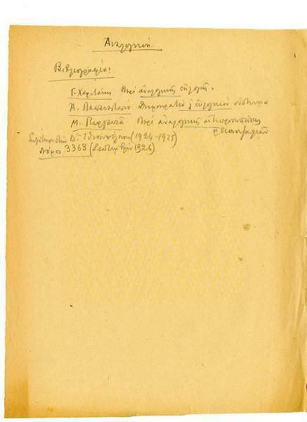 Μελέτες, σημειώσεις, αποκόμματα και λοιπά υλικά