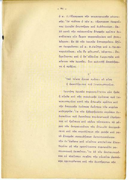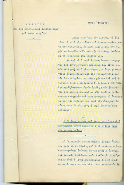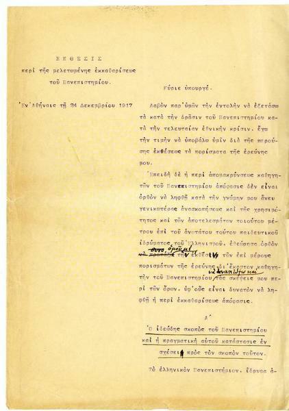 Έκθεσις περί της μελετωμένης εκκαθαρίσεως του Πανεπιστημίου