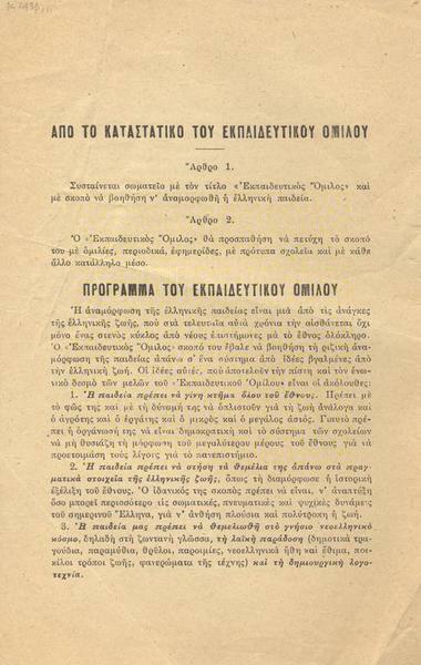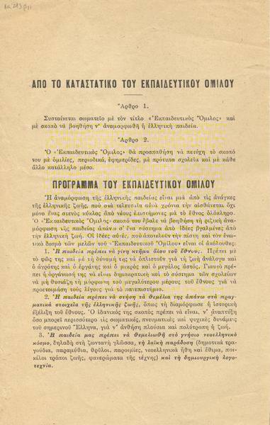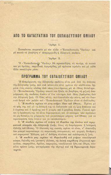 Από το Καταστατικό του ΕΟ - Πρόγραμμα του ΕΟ