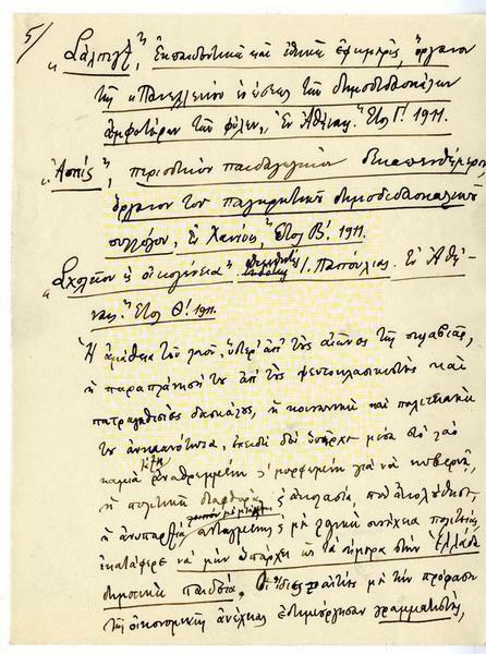 Μελέτες, σημειώσεις, αποκόμματα και λοιπά υλικά