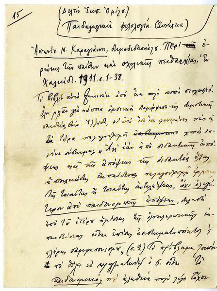 [Κείμενα για το Δελτίο του Εκπαιδευτικού Ομίλου]