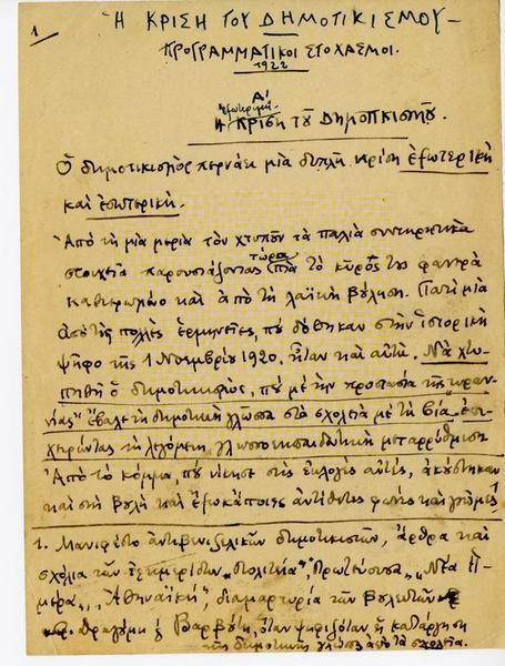 Μελέτες, σημειώσεις, αποκόμματα και λοιπά υλικά