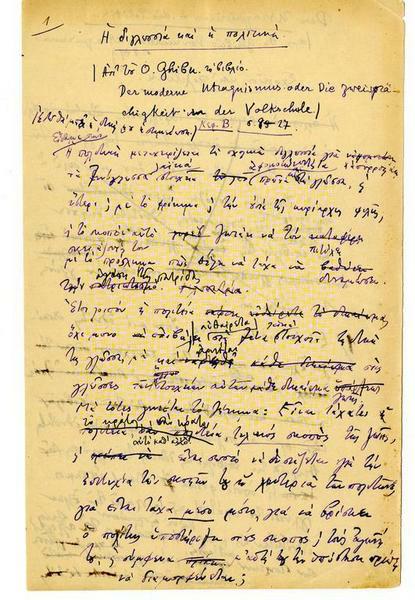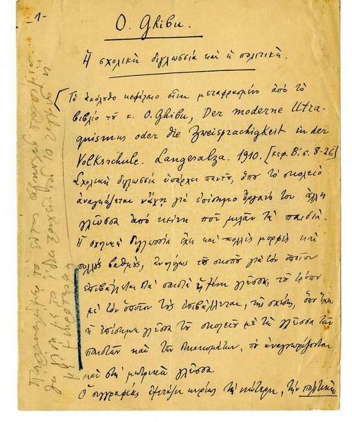 Μελέτες, σημειώσεις, αποκόμματα και λοιπά υλικά
