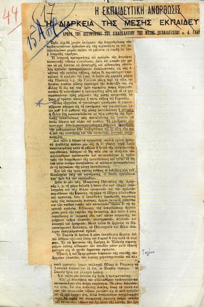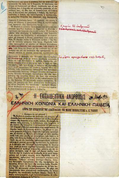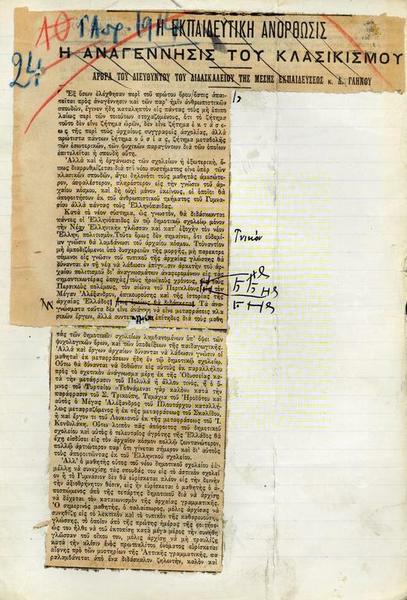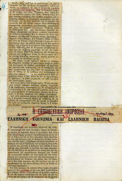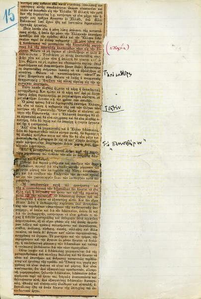 Μελέτες, σημειώσεις, αποκόμματα και λοιπά υλικά