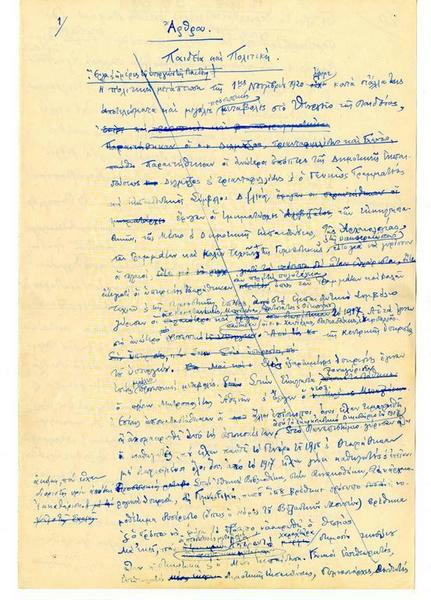 Μελέτες, σημειώσεις, αποκόμματα και λοιπά υλικά