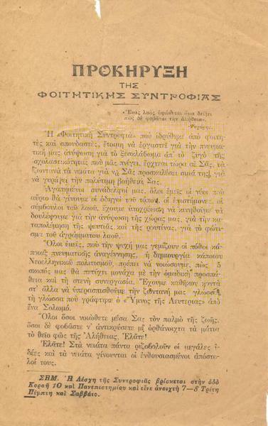 Προκήρυξη της Φοιτητικής Συντροφιάς