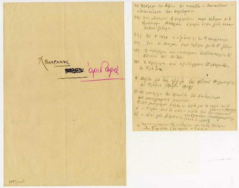Μελέτες, σημειώσεις, αποκόμματα και λοιπά υλικά