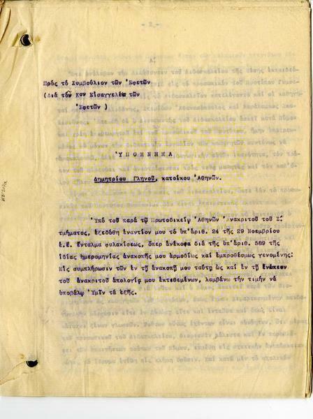 Υπόμνημα προς το Συμβούλιον των Εφετών