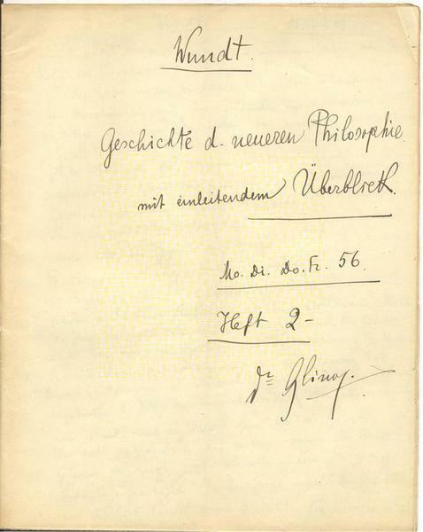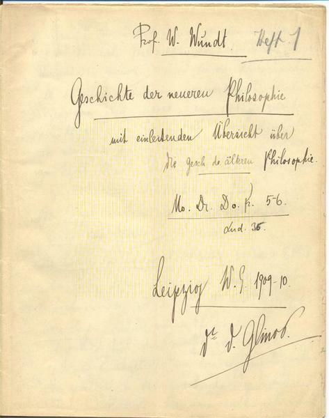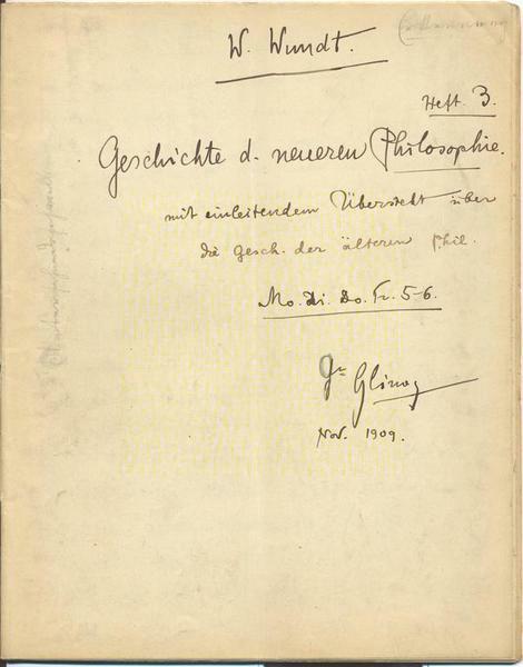[Σημειώσεις πανεπιστημιακών παραδόσεων W.Wundt ]