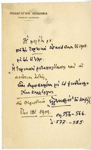 Μελέτες, σημειώσεις, αποκόμματα και λοιπά υλικά