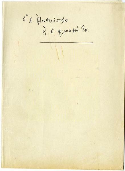 Ο Α. Ελευθερόπουλος και η φιλοσοφία του